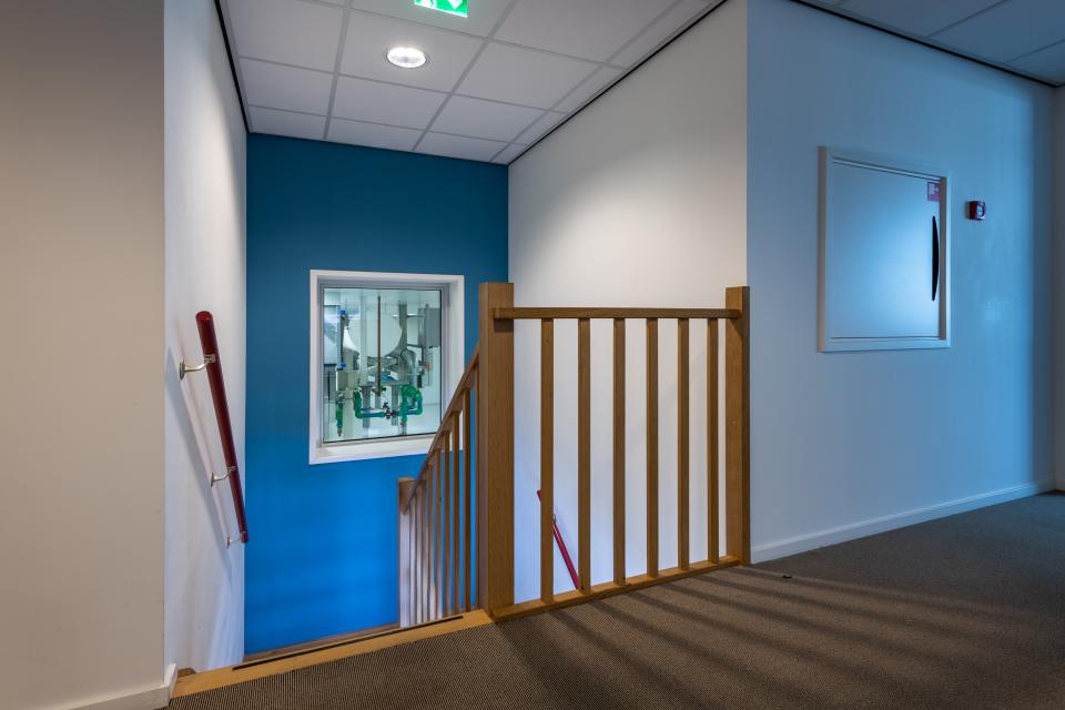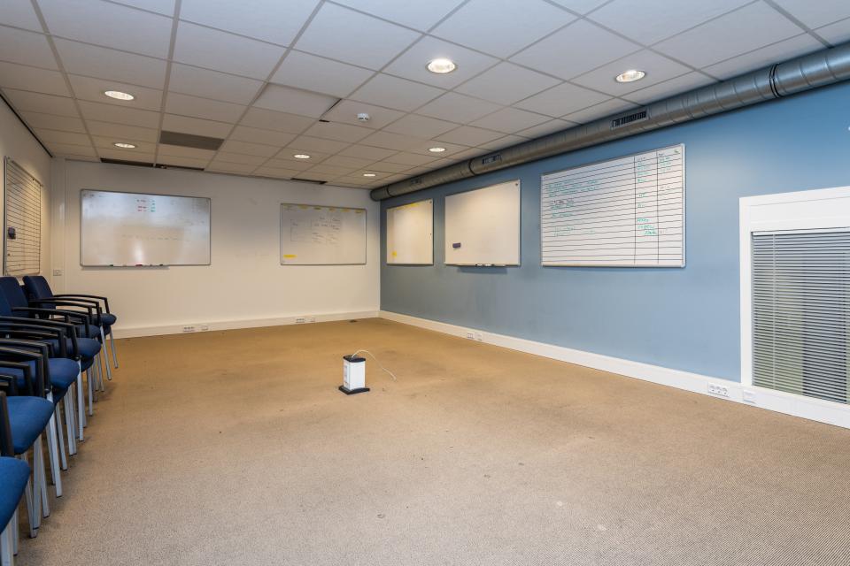The building has a contemporary feel and is furnished with a clean workspace that previously served as a cleanroom. If this space is to be used as a cleanroom again, the necessary modifications to the installations will have to be carried out. The space will also need to be recertified. The office area is located at the front of the building and, in addition to the necessary offices, workspaces and meeting rooms, also includes a canteen and toilet facilities. There is also a technical room, an archive and two changing rooms with lockers. These rooms are spread over the ground floor and first floor and have a total surface area of approximately 400 m².