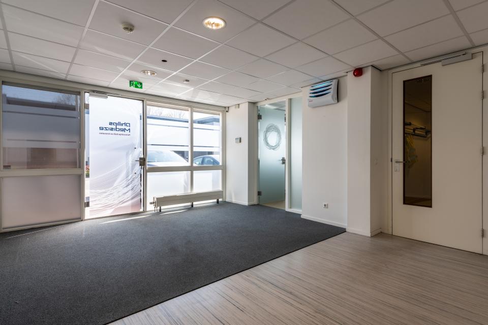 Behind the 'office area' is the commercial space, which has a total area of approximately 1,225 m², of which approximately 700 m² has served as an ISO class 7 cleanroom and can now be used (and is offered) as a 'clean workspace'. The presence of this clean workspace makes the building extremely suitable for high-quality production and manufacturing processes that require such a working environment. In addition to the clean workspace, there are of course also the necessary areas that support the production process and from which logistics and storage are organised.