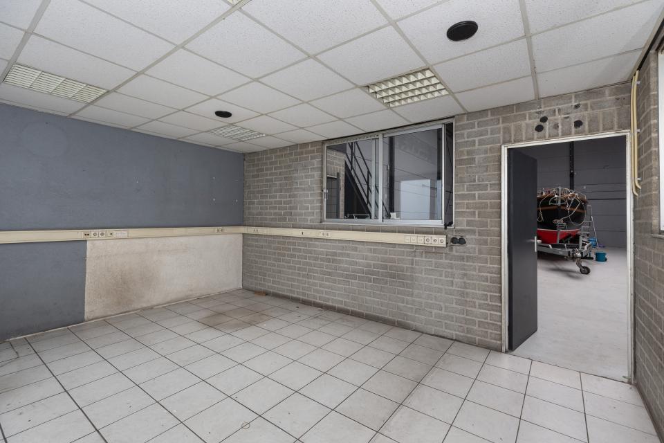 Deze zeer courante bedrijfsruimte van circa 200 m² heeft een vrije hoogte van ongeveer 7 meter en is inclusief een kleine kantoorruimte van 22 m² op de begane grond. De kantoorruimte is voorzien van een systeemplafond met verlichting, verwarming, kabelgoot en een plavuizen vloer. Middels een trap vanuit de bedrijfsruimte is de eveneens 22 m² grote kantoor- kantineruimte op de verdieping bereikbaar. Ook deze ruimte heeft een prima daglichtinval en kan dus voor meerdere doeleinden gebruikt worden.