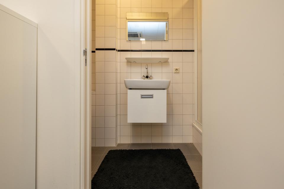 Via de loopdeur komt u een halletje waar u enerzijds naar de afgesloten bedrijfsruimte kunt of anderzijds middels de fraaie glazen deur de trap naar de kantoorruimte op de eerste verdieping bereikt. De bedrijfsruimte kent een behoorlijk luxe afwerkingsniveau wat grotendeels veroorzaakt wordt door het aanwezige systeemplafond met verlichting en de vloerbedekking. Verder is de bedrijfsruimte voorzien van een prima overheaddeur, een toilet met wastafel en douche, verwarming, een pantry en airconditioning.