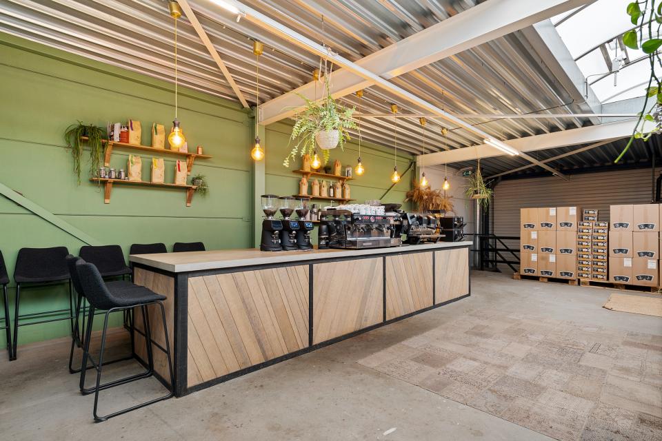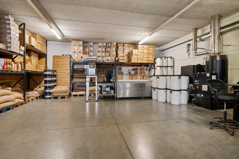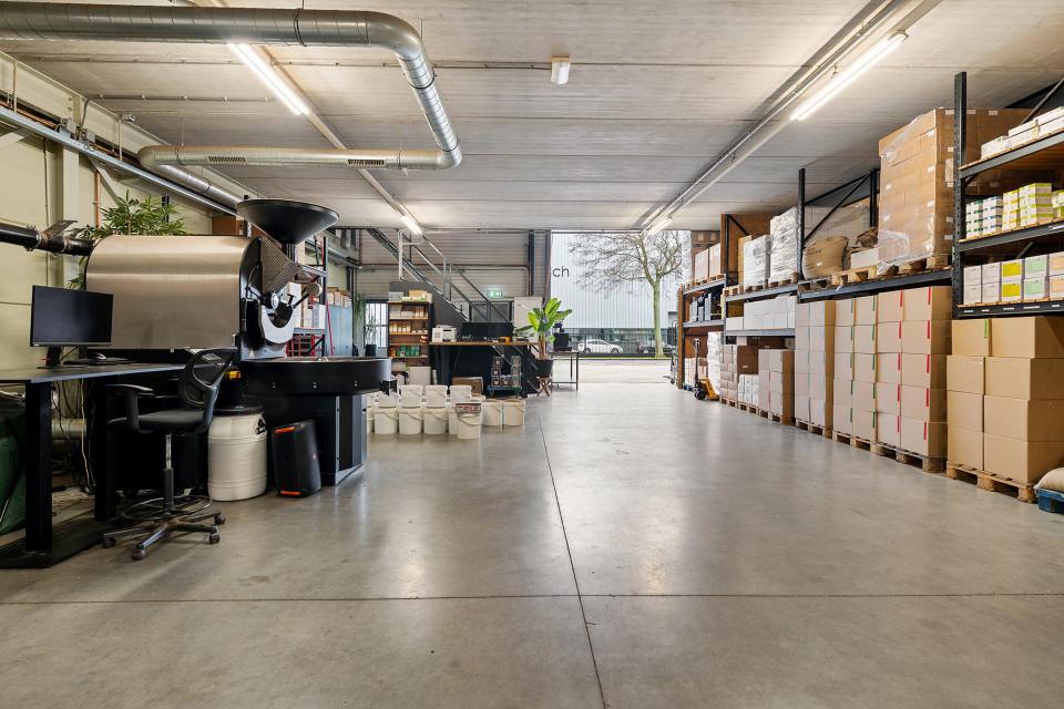 Door middel van de trap aan de voorzijde van het pand is de eerste verdieping bereikbaar die thans is ingericht als 'open' verkoop- en werkruimte. In verband met de huidige bedrijfsactiviteiten (een koffiebranderij) is de ruimte sfeervol en informeel, als vrijwel één grote ruimte ingericht waar naast een keuken opstelling ook de nodige bureaus aanwezig zijn voor de bijkomende kantooractiviteiten. Een gedeelte van circa 23 m² is afgeschermd en doet dienst als archief/berging. Door de royale lichtstraat die in het dak aanwezig is, is er sprake van een bijzonder aangenaam en comfortabel werkklimaat. De vrije hoogte op deze verdieping bedraagt circa 3,2 meter.