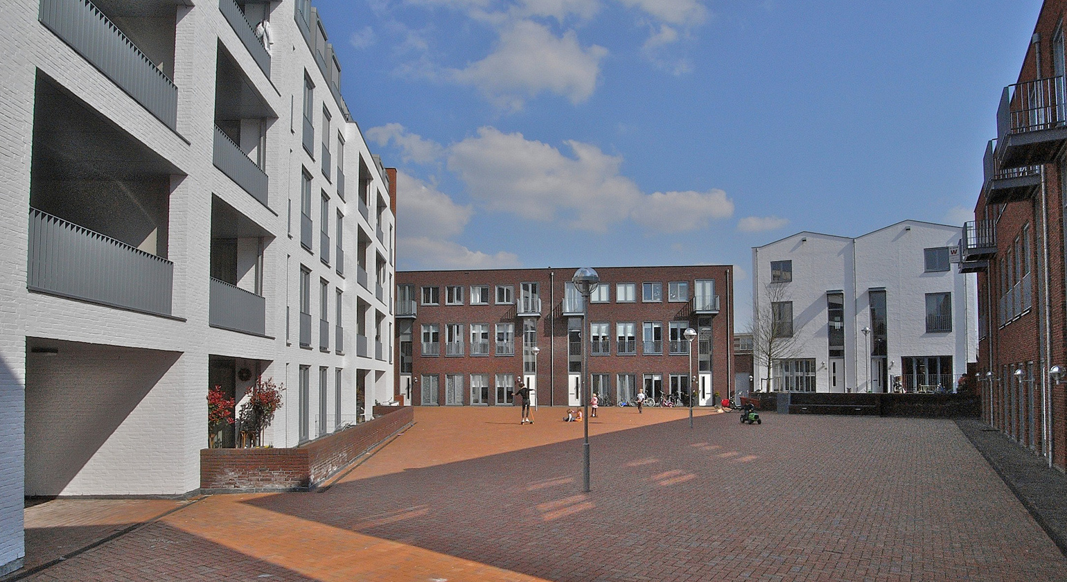 De muren van de supermarkten zijn optimaal benut door er een woonfunctie aan te koppelen. Alle woningen liggen echt midden in het dorpscentrum en waren zeer gewild.