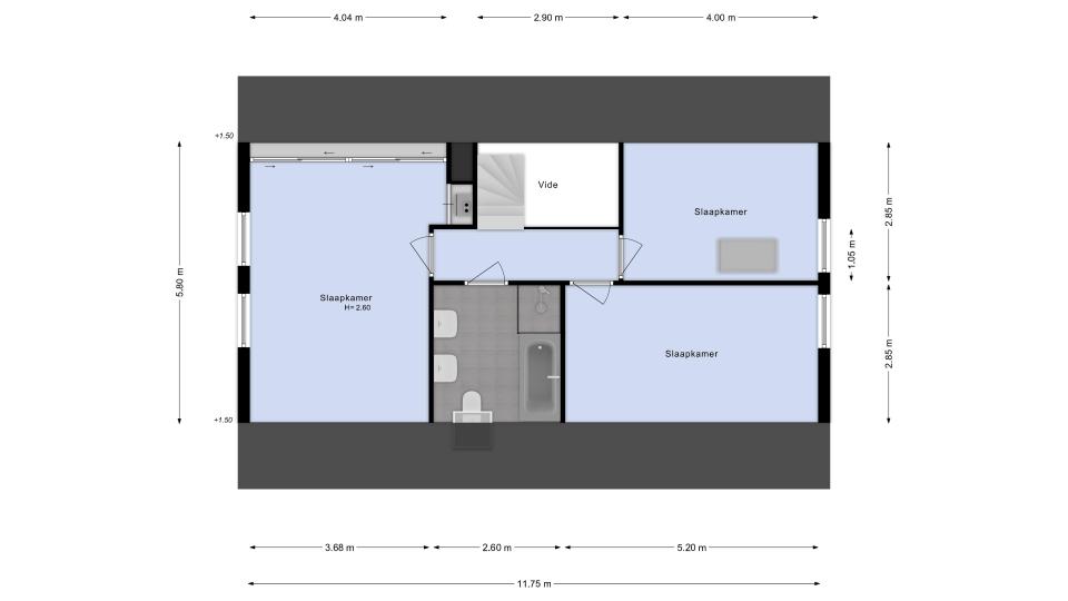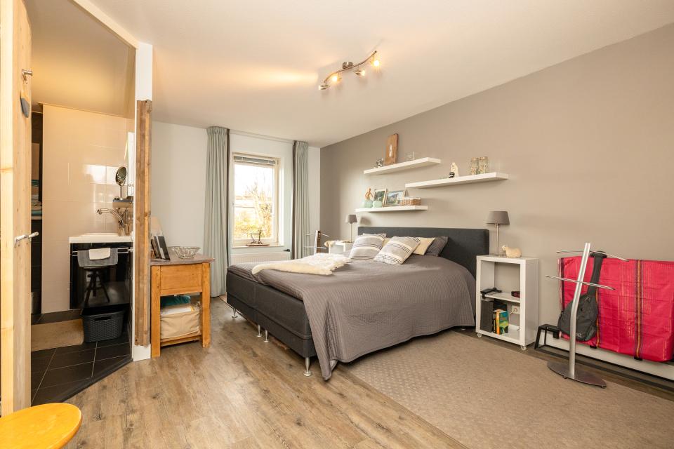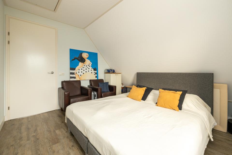 Vanaf de overloop zijn drie slaapkamers en badkamer bereikbaar. De kamers zijn goed van formaat en één van de slaapkamers beschikt over een vaste kastenwand. De badkamer is compleet uitgevoerd en voorzien van een ligbad, aparte douche, twee wastafels en toilet.De opstelplaats voor de cv-installatie bevindt zich in de slaapkamer in een afgesloten ruimte.