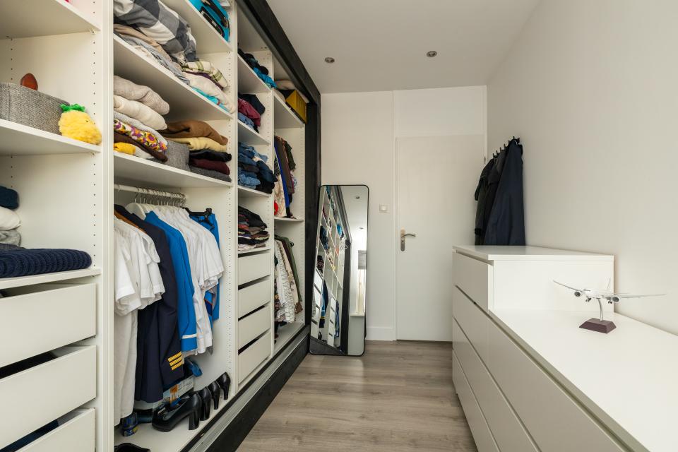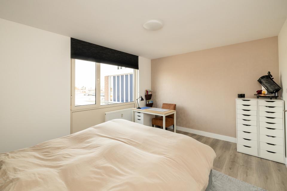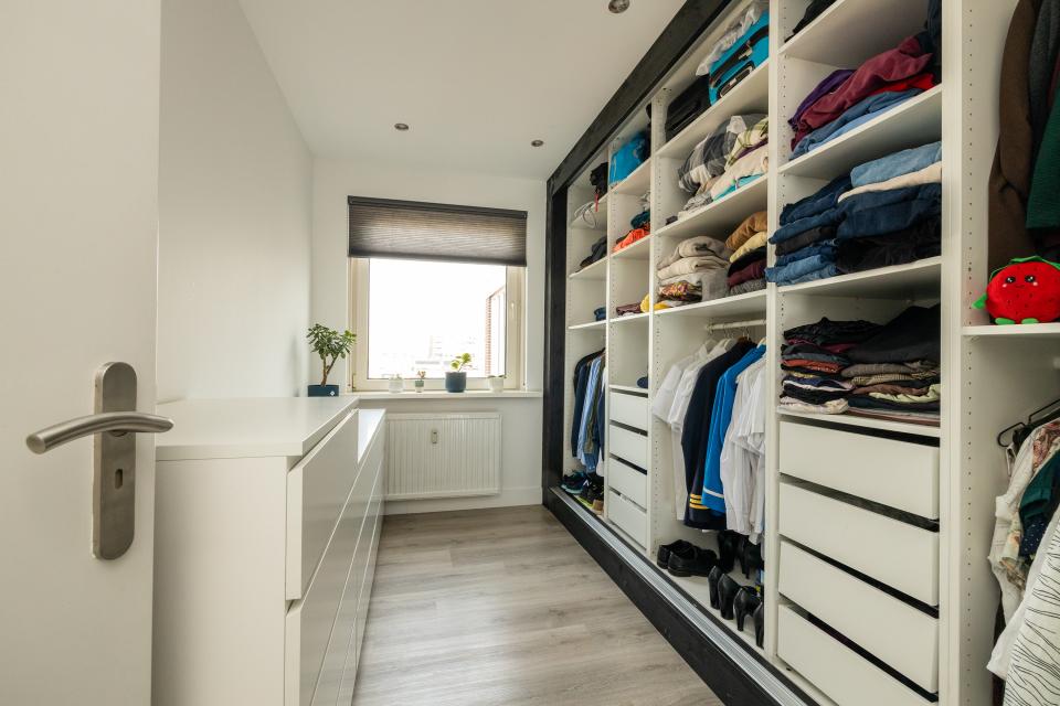 Het appartement beschikt over twee goed bemeten slaapkamers, waarvan één kamer momenteel is ingericht als inloopkast.