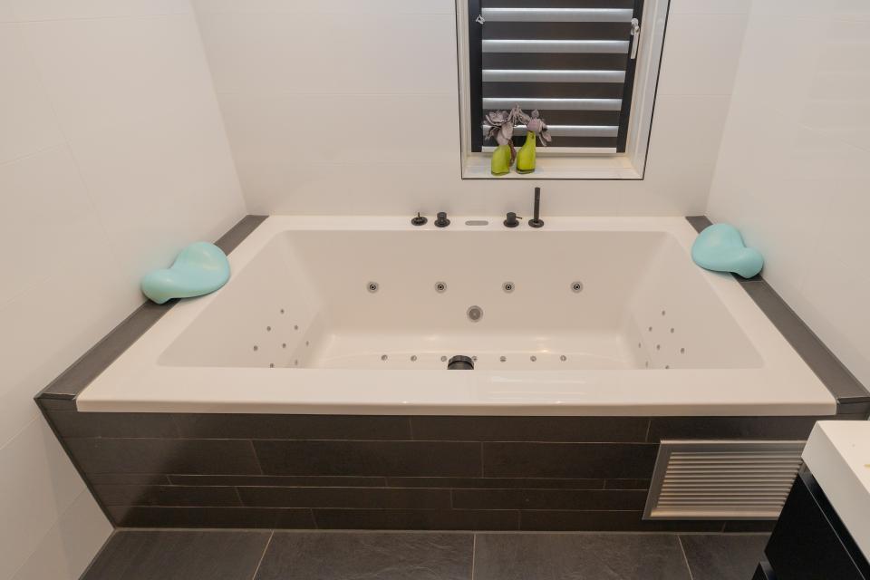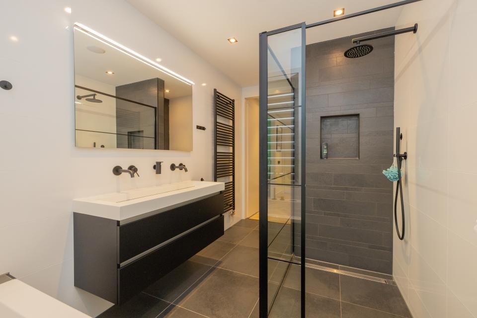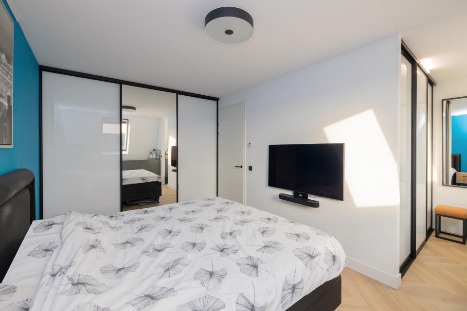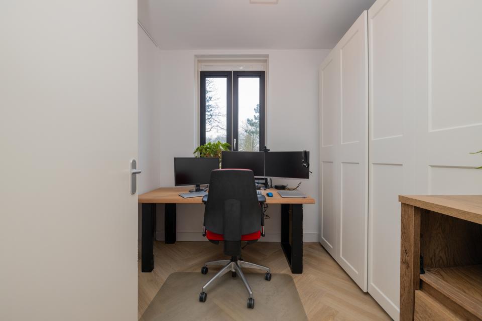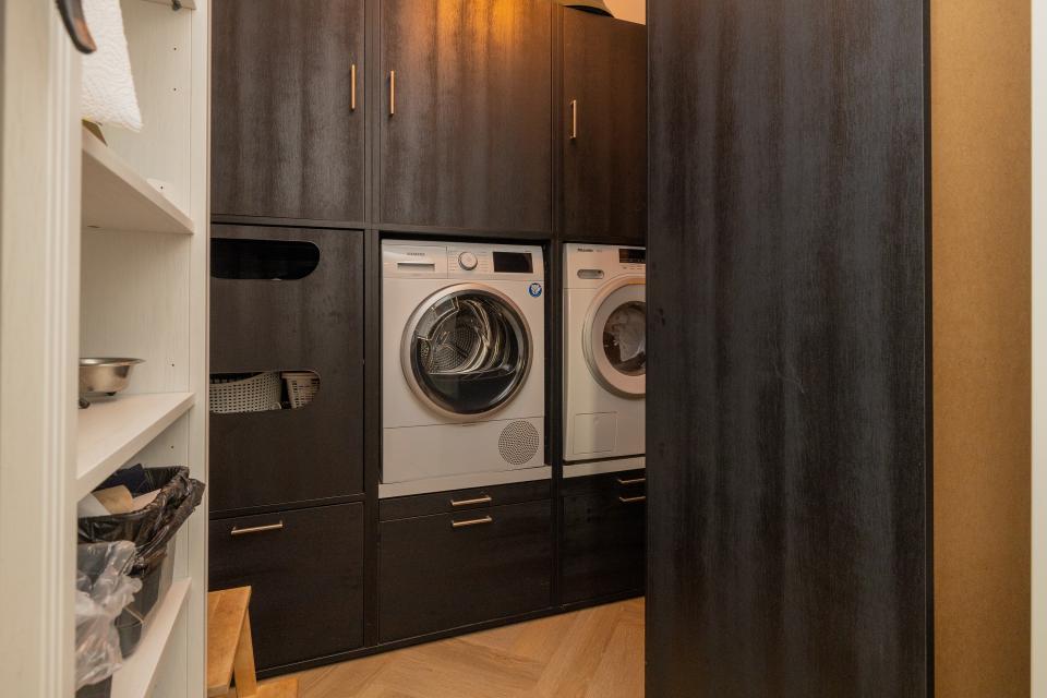 Ook deze verdieping is verrassend ruim en praktisch ingedeeld. Hier vindt u nog twee volwaardige slaapkamers, een tweede badkamer en een separate wasruimte met aansluitingen voor wasmachine en droger. In deze ruimte bevindt zich tevens de omvormer voor de zonnepanelen.