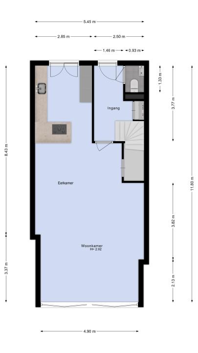 Via de voortuin bereikt u de entree van de woning. In de hal bevinden zich de meterkast , het vrij hangende toilet in moderne afwerking en vaste trap naar de verdieping. Vanuit de hal komt u in de lichte, aan de achterzijde uitgebouwde, zeer ruime woonkamer. De uitbouw is voorzien van grote raampartijen en volledig te openen harmonica deuren naar de achtertuin.