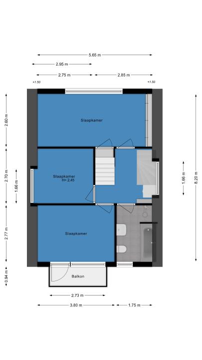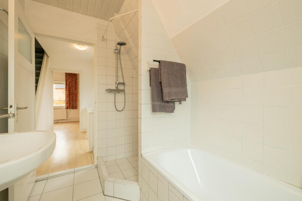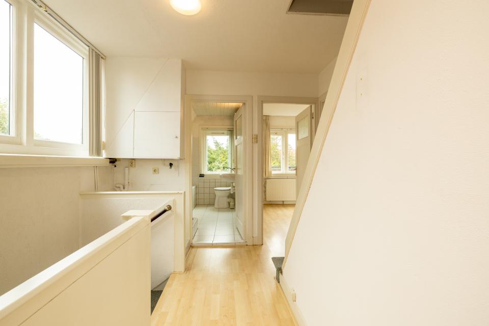 De overloop leidt naar drie slaapkamers. De hoofdslaapkamer aan de voorzijde is licht en ruim, voorzien van vaste kastenwand. De kamer aan de achterzijde beschikt over een deur naar het balkon. De derde slaapkamer is ideaal als kinderkamer of werkkamer. De badkamer is uitgerust met een ligbad, douche, wastafel en toilet.Tweede verdieping