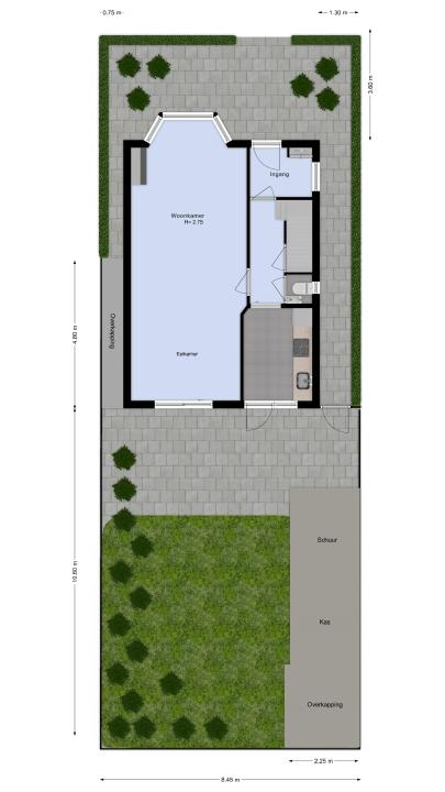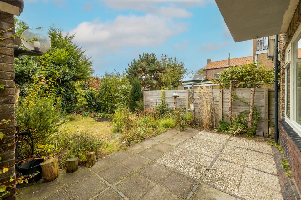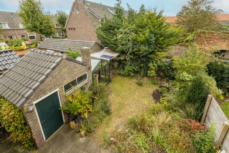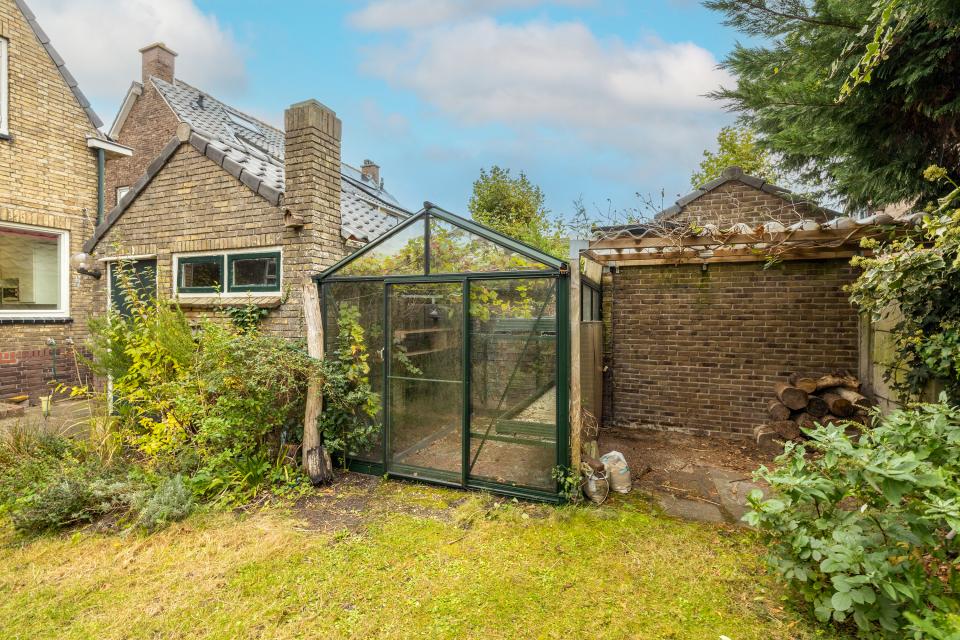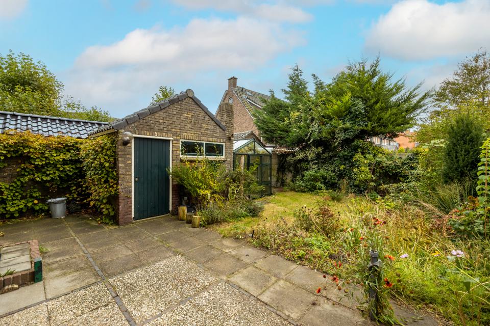 De achtertuin is zonnig, op het zuiden gelegen en biedt veel privacy. Achterin de tuin vind je een stenen schuur, een glazen kas en een overkapping.Omgeving