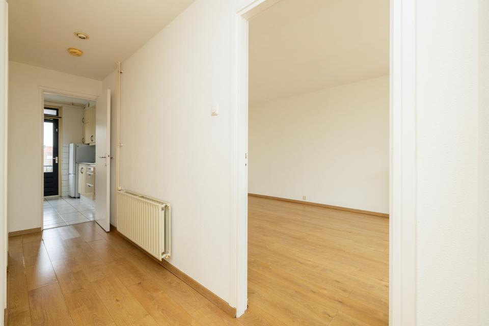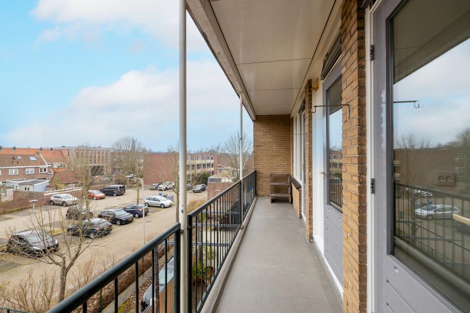 Via de verzorgde centrale entree bereikt u het appartement. Bij binnenkomst komt u in de hal met meterkast, die toegang biedt tot vrijwel alle vertrekken. De lichte en ruim opgezette woonkamer biedt volop ruimte voor een comfortabele zithoek en een royale eettafel. Dankzij de grote raampartijen is er een prettige daglichtinval en een fijn uitzicht.In het verlengde van de woonkamer bevindt zich een extra kamer, met toegang tot het balkon. Deze ruimte kan worden ingericht als bijvoorbeeld een werk/hobby kamer. Hier bevinden zich tevens de opstelplaats van de cv installatie en de aansluiting voor de wasmachine en wasdroger. De dichte keuken is praktisch ingericht en voorzien van boven,- en onderkasten. Ook vanuit de keuken is het balkon (ca. 8 m²) bereikbaar.