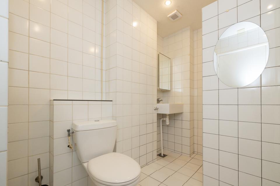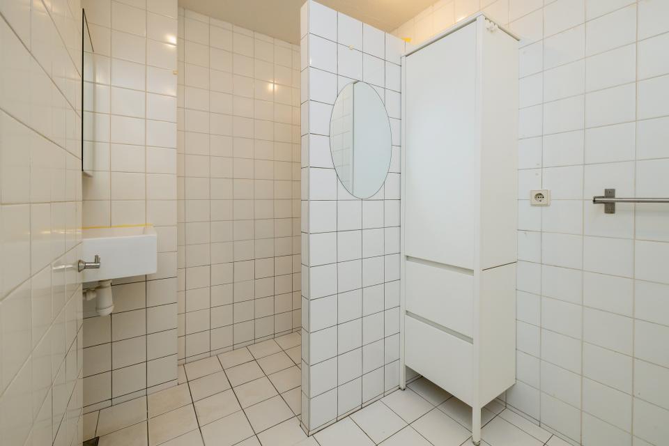 Het appartement beschikt over twee slaapkamers waarvan één slaapkamer eveneens toegang biedt tot het balkon. De badkamer is geheel betegeld en voorzien van een douche, wastafel en toilet.