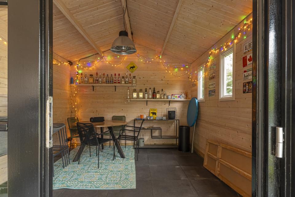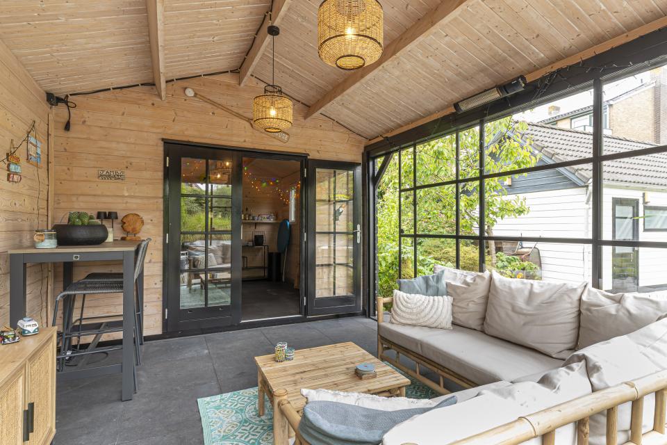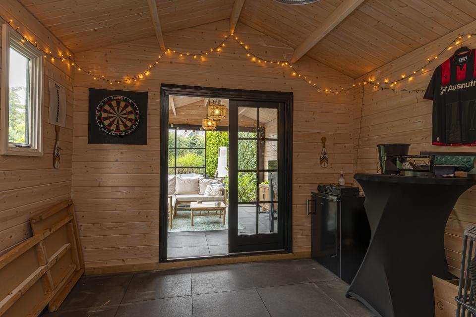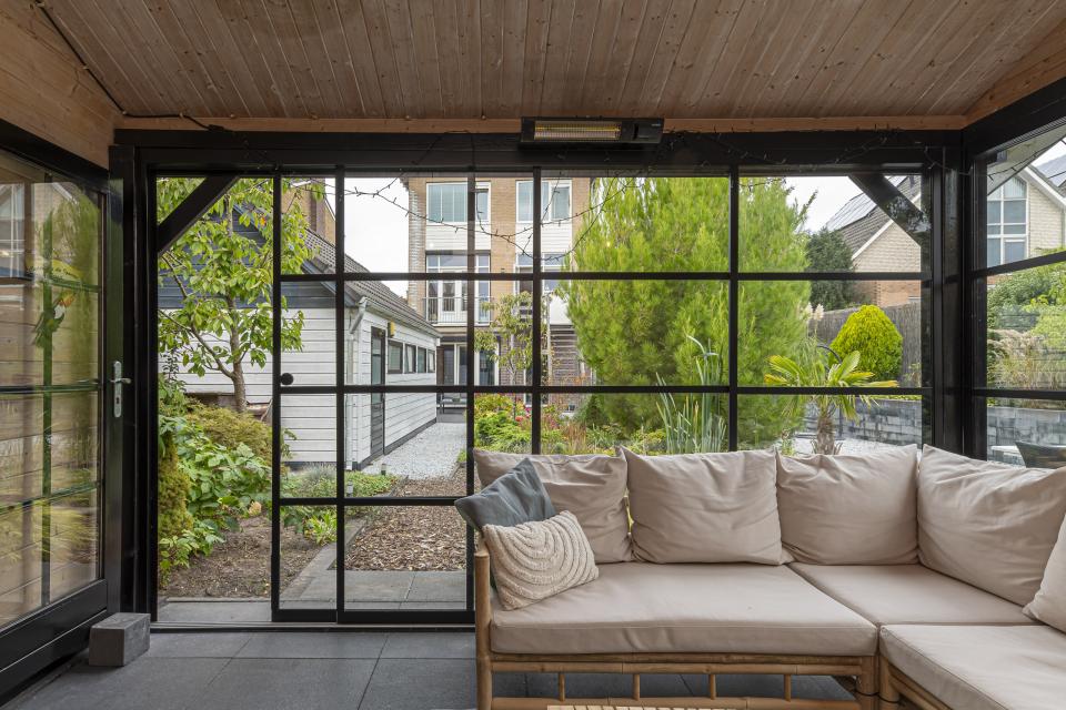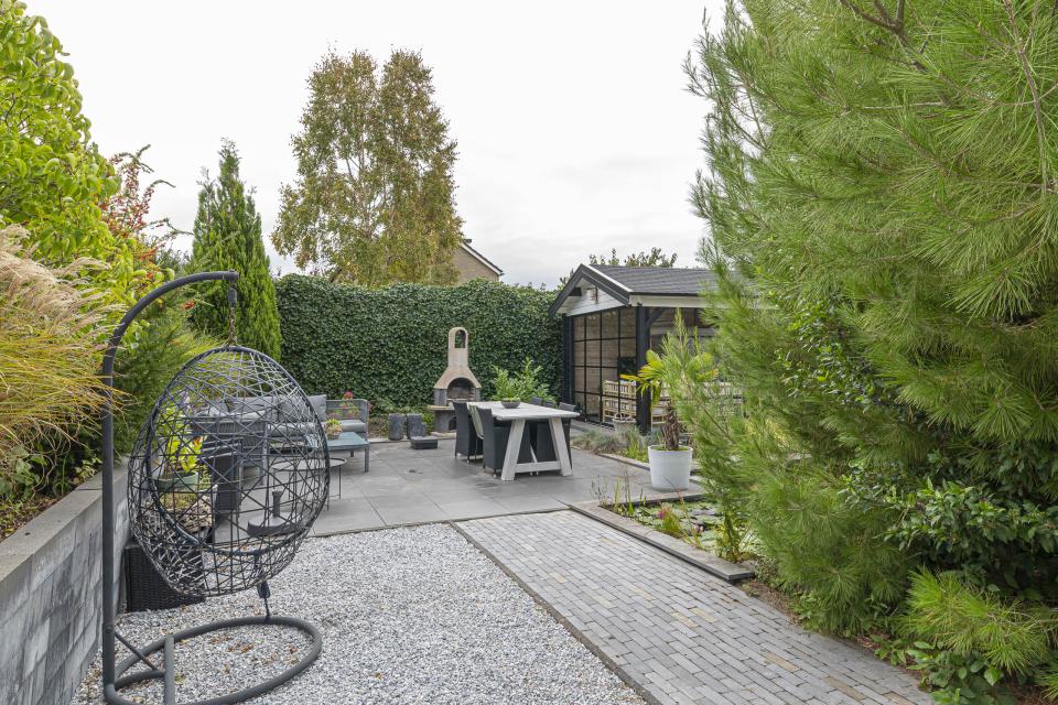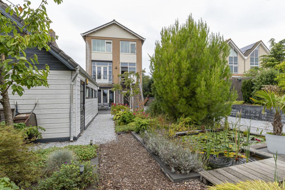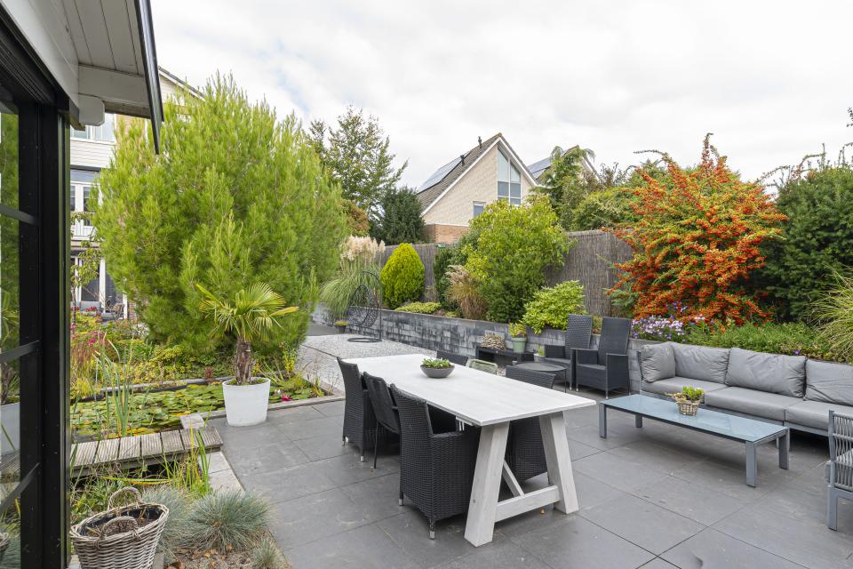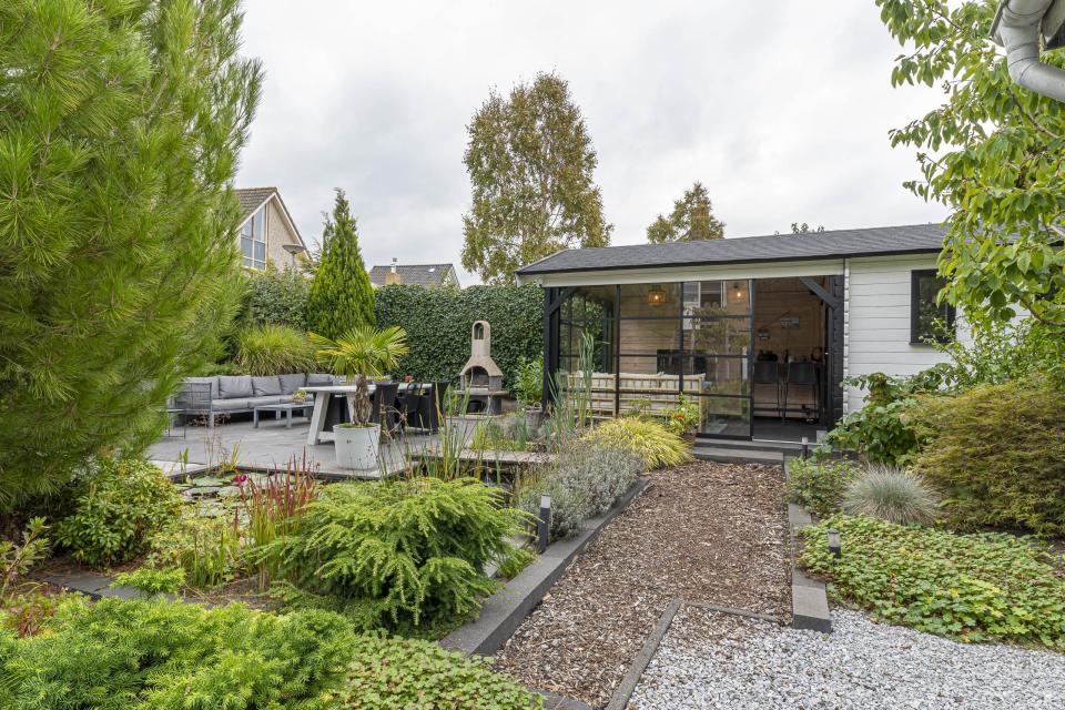 De ruim 20 meter diepe, zonnige achtertuin op het zuidoosten biedt een heerlijke plek waar je kunt genieten van veel privacy. Dankzij de gunstige ligging is er de hele dag zon. Er zijn meerdere zonneterrassen aangelegd. De vijver draagt bij aan de uitstraling van de tuin. Achter in de tuin bevindt zich het ruime tuinhuis. Dit tuinhuis is gedeeltelijk v.v. een fraaie glazen pui. Een ruimte die voor velerlei doeleinden te gebruiken is.Garage