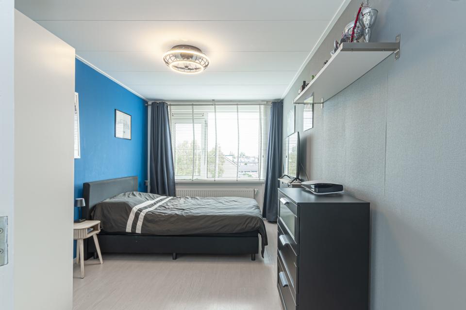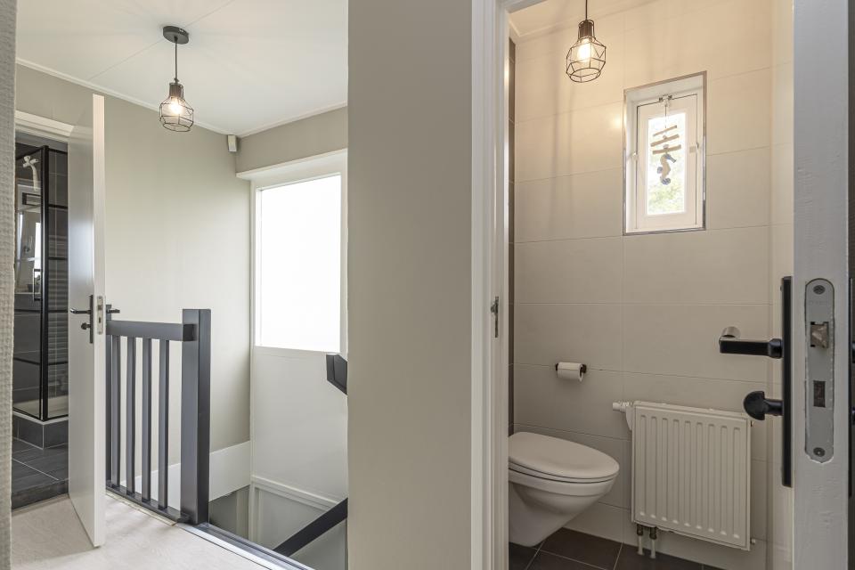 Hier bevinden zich een drietal goede slaapkamers. Twee slaapkamers bevinden zich aan de achterzijde en één slaapkamer aan de voorzijde. Deze slaapkamer aan de voorzijde heeft toegang naar het balkon aan de voorzijde van de woning. Verder is er de fraai betegelde badkamer met een douche en een dubbel wastafelmeubel. Op de overloop is er het separate toilet.Tuin-Tuinhuis-Garage