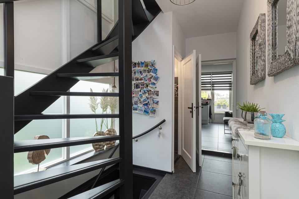 Via de entree kom je in de hal met trap naar zowel de eerste verdieping als naar het souterrain. In deze hal bevinden zich tevens het toilet en de meterkast. Vervolgens is er de woon/zitkamer aan de voorzijde van de woning. Aan de achterzijde is er de gezellige woon-eetkeuken. De mogelijkheid om beide ruimtes af te scheiden wordt geboden door de glazen deuren (met stalen kozijnen). De open keuken (2008) is in lichte kleurstelling en v.v. inbouwapparatuur; te weten koelkast, magnetron, gasfornuis (2021) en oven (2021), quooker (2017), afwasmachine (2018) en RVS afzuigkap (2021). Vanuit de woonkeuken komt u door middel van de buitentrap in de grote, fraai aangelegde, tuin.Souterrain