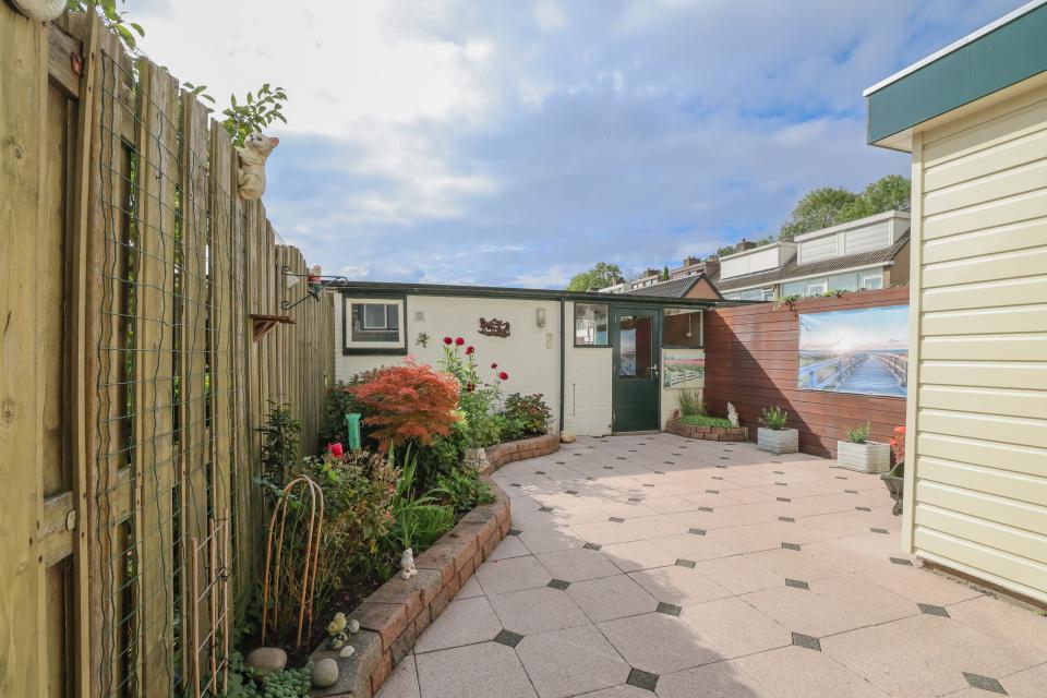 Zonnige, op het zuidwesten gelegen, vrije achtertuin! Achterin de tuin staat een stenen berging. De tuin is ook via een achterom bereikbaar en grenst aan een plein met garages.Eerste verdieping