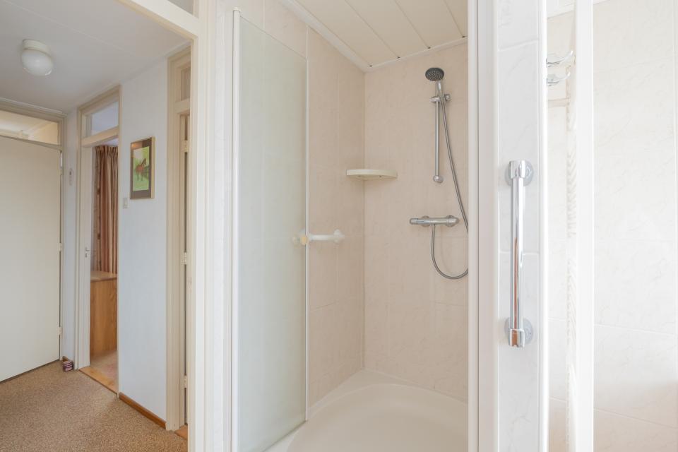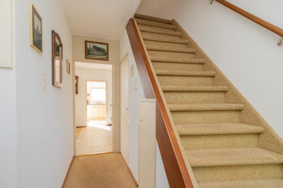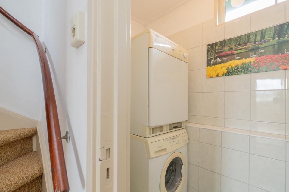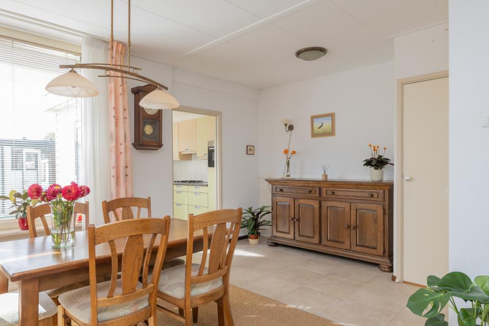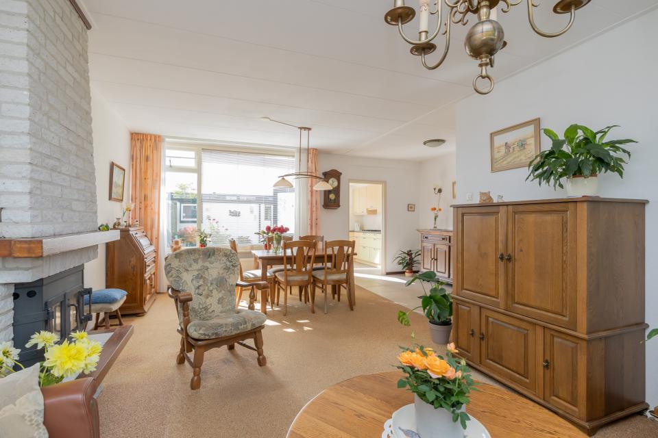 Via de voortuin bereik je de entree met hal, meterkast, garderobe en bergruimte onder de trap. Tevens is er het toilet met fonteintje. De lichte doorzon woonkamer heeft grote raampartijen aan beide zijden en biedt ruimte voor een comfortabele zithoek en eetgedeelte. In de aanbouw bevindt zicht de gesloten keuken met diverse inbouwapparatuur en toegang tot de zonnige tuin.Tuin