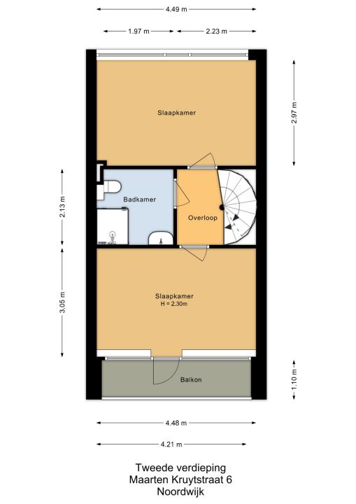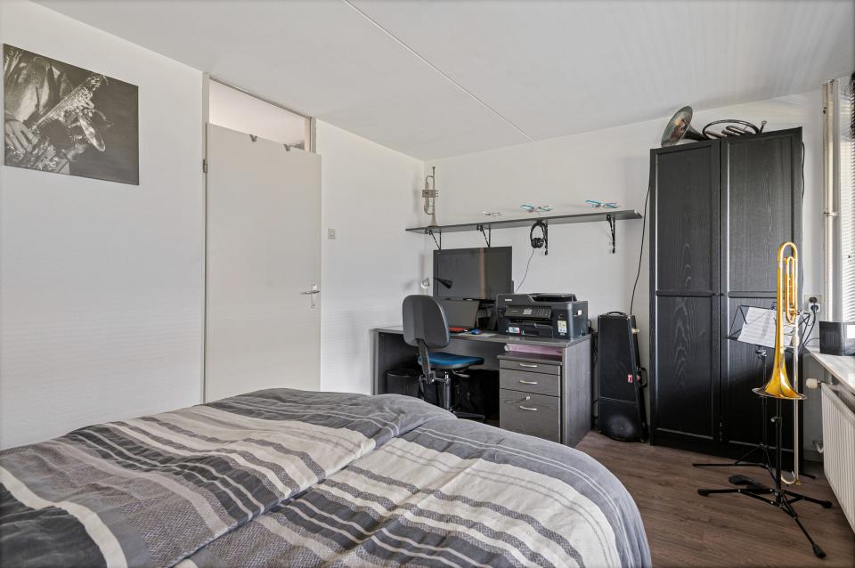 Via de overloop zijn twee ruime slaapkamers en de badkamer bereikbaar. De hoofdslaapkamer bevindt zich aan de voorzijde van de woning en heeft directe toegang tot het balkon.