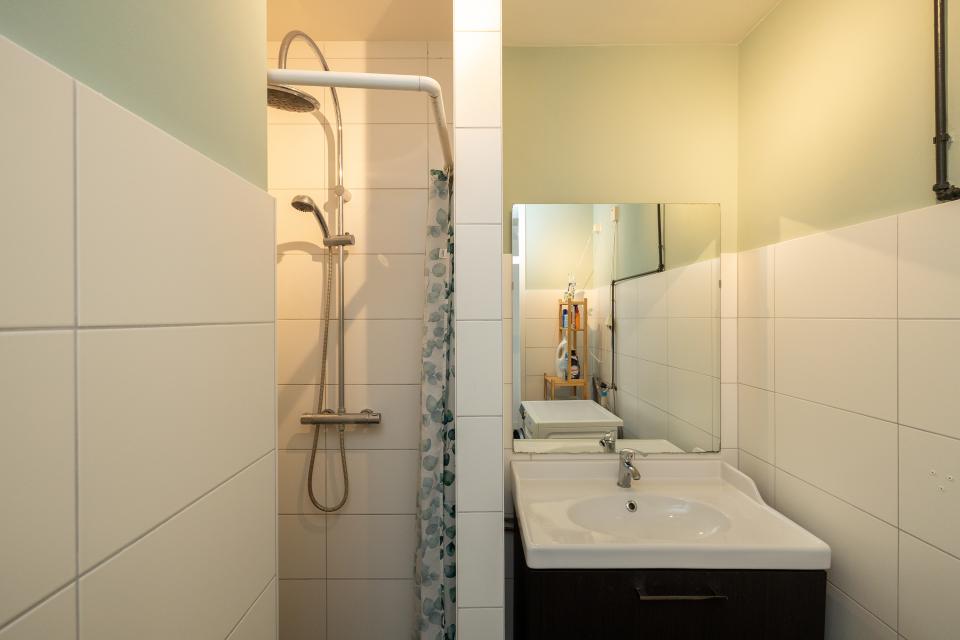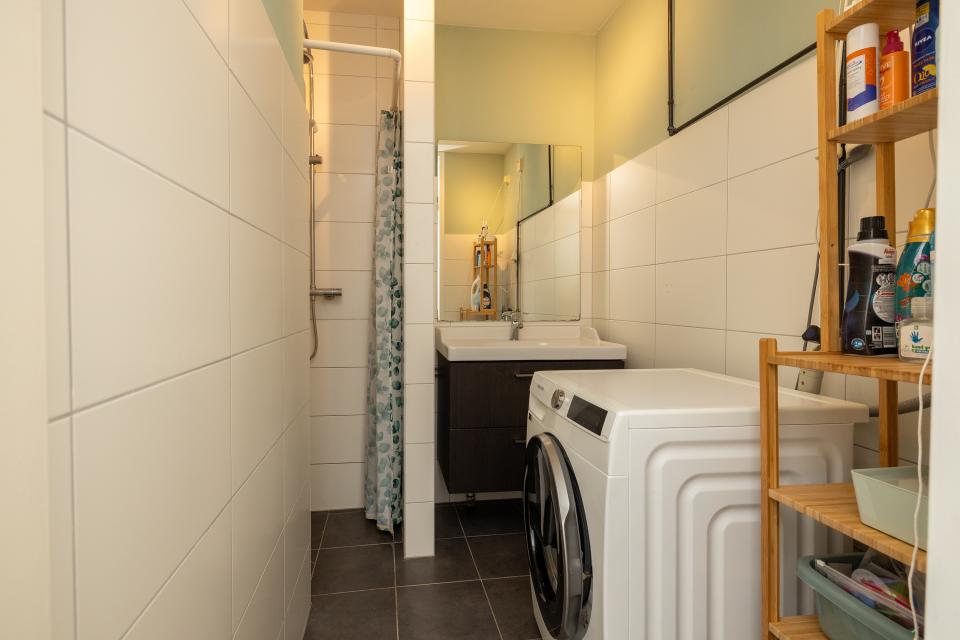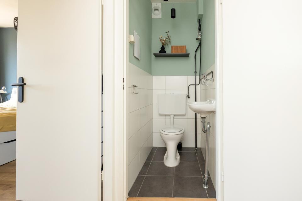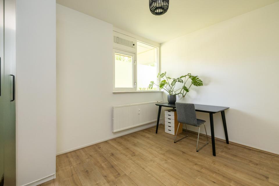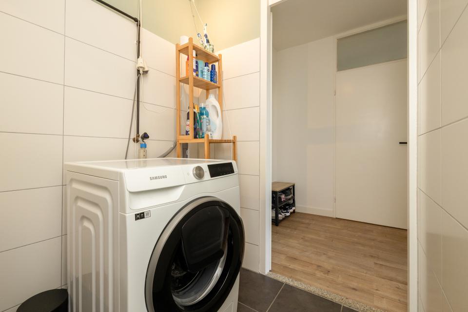 Aan de galerijzijde is er nog een flinke tweede slaapkamer. Centraal is er nog de nette badkamer welke is voorzien van een inloopdouche en wastafelmeubel. In de badkamer bevindt zich tevens de aansluiting voor de wasmachine. Daarnaast is er nog een separaat toilet.