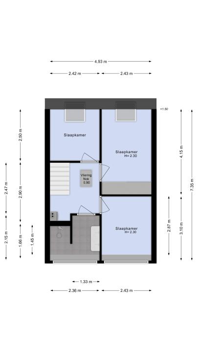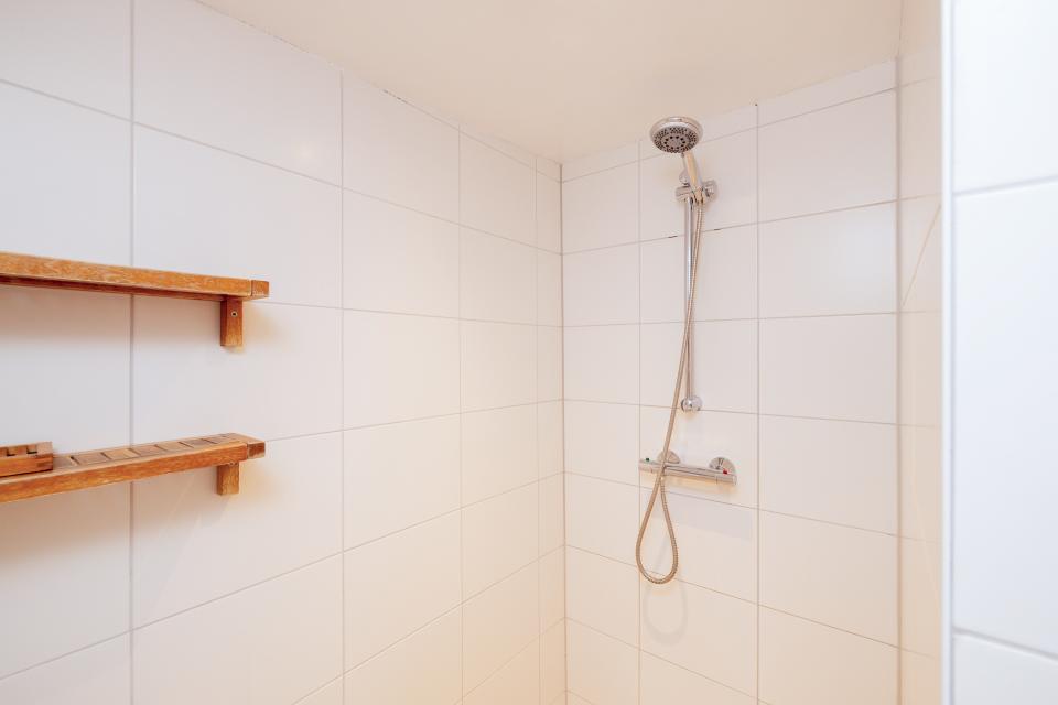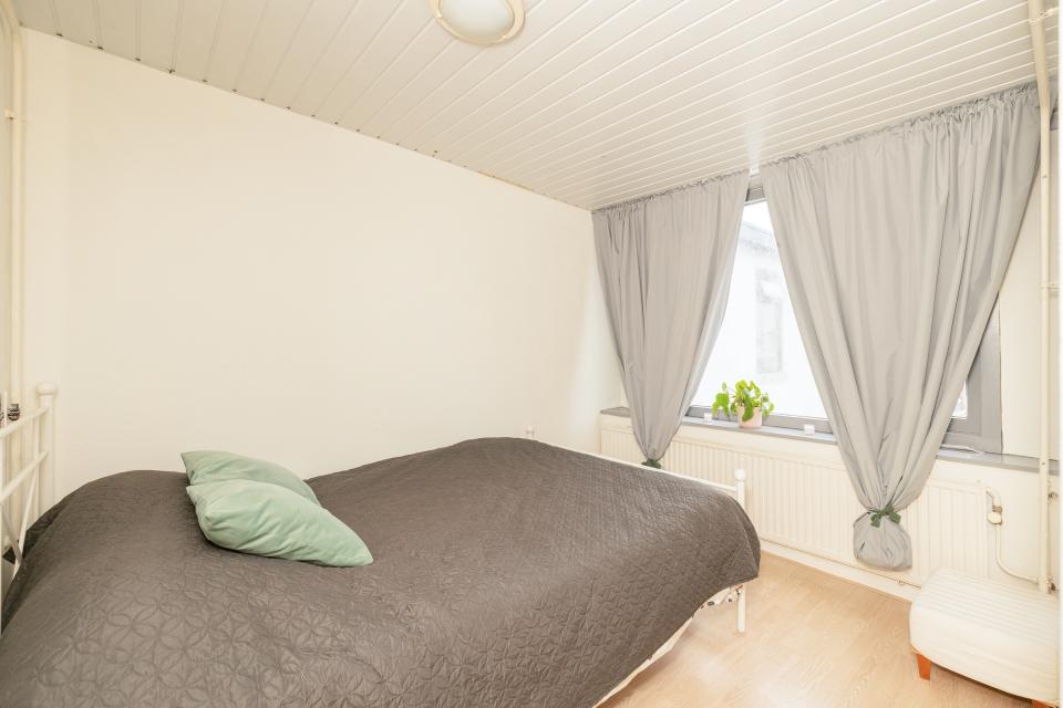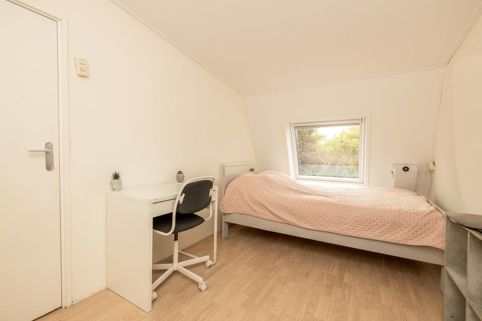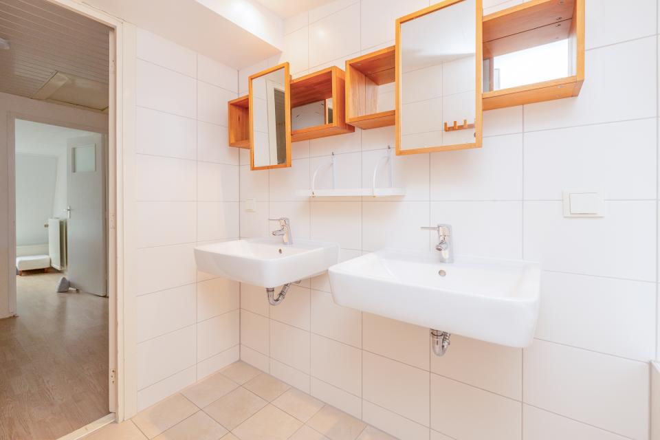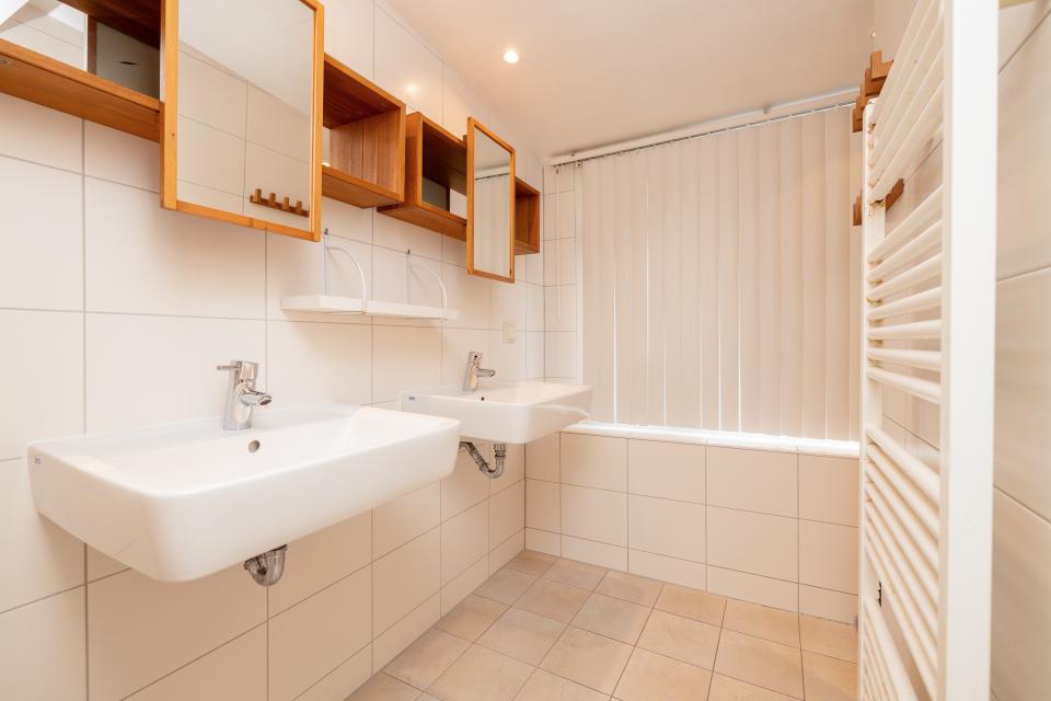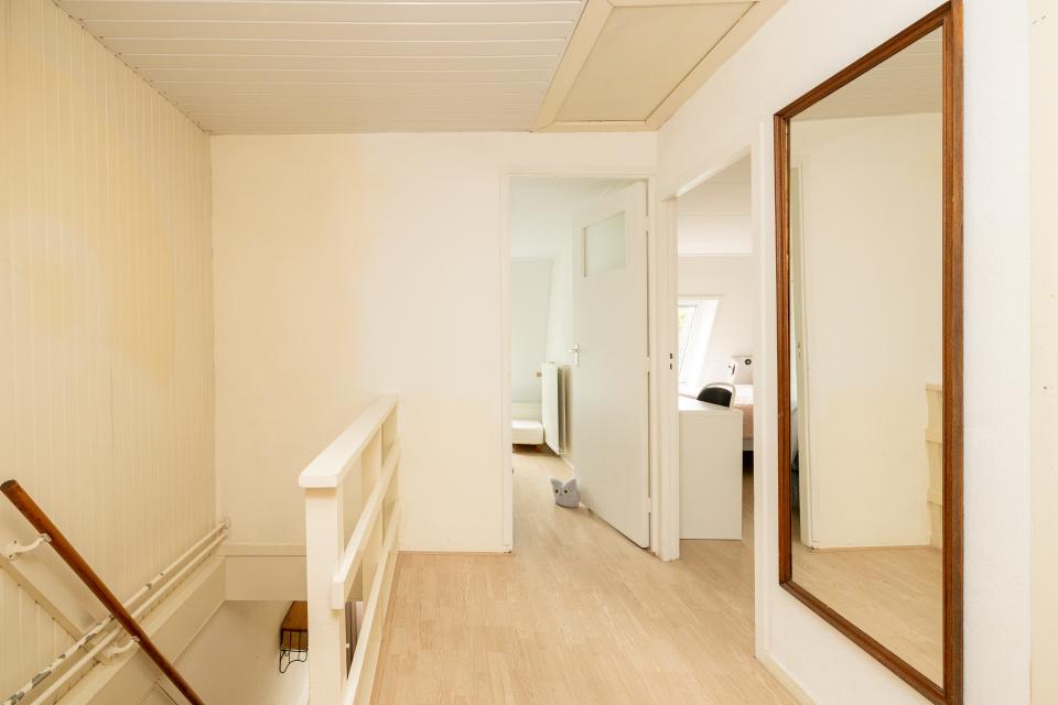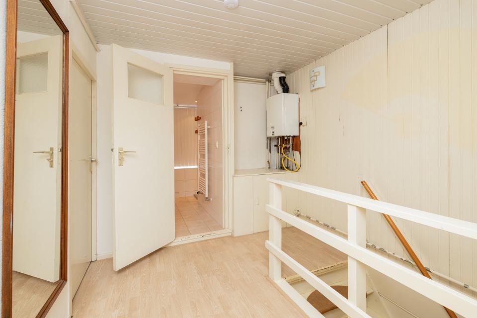 Via de overloop, met opstelplaats van de cv-installatie, zijn drie slaapkamers en de badkamer bereikbaar. De twee slaapkamers aan de voorzijde van de woning zijn voorzien van groot formaat dakramen, en zijn deels voorzien van dakisolatie. De badkamer is voorzien van twee wastafels, een inloopdouche, designradiator, spiegelkastjes en net tegelwerk. In de badkamer bevindt zich tevens een raam.Tuin
