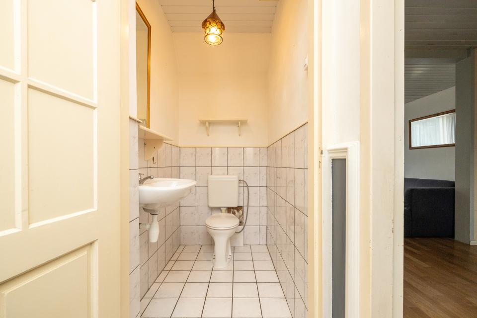 Entree, hal met vaste trap naar de eerste verdieping, toegang tot de woonkamer. De woonkamer is licht en ruim met een groot raam aan de voorzijde en biedt voldoende plek voor een zit- en eethoek. Aansluitend vind je de keuken (achterzijde), evenals het toilet, een bijkeuken of berging. Daarnaast is er een slaapkamer aanwezig met een aansluiting voor een wasmachine of droger.1e Verdieping