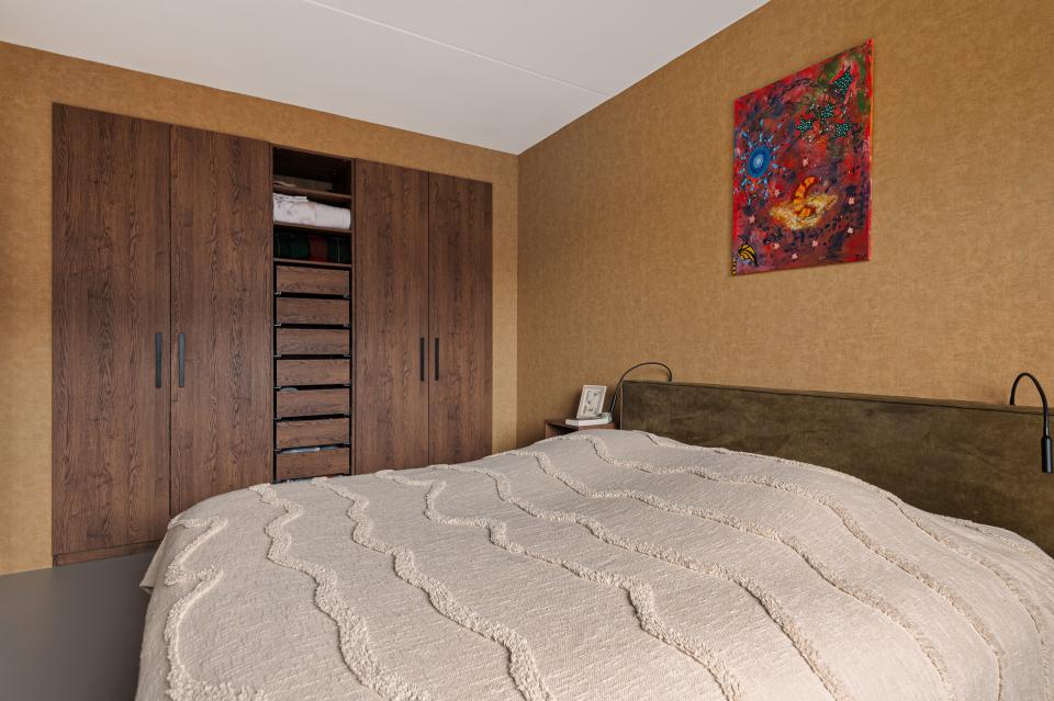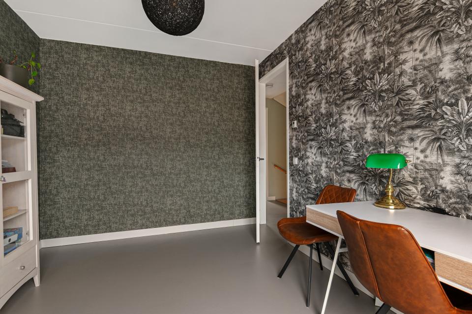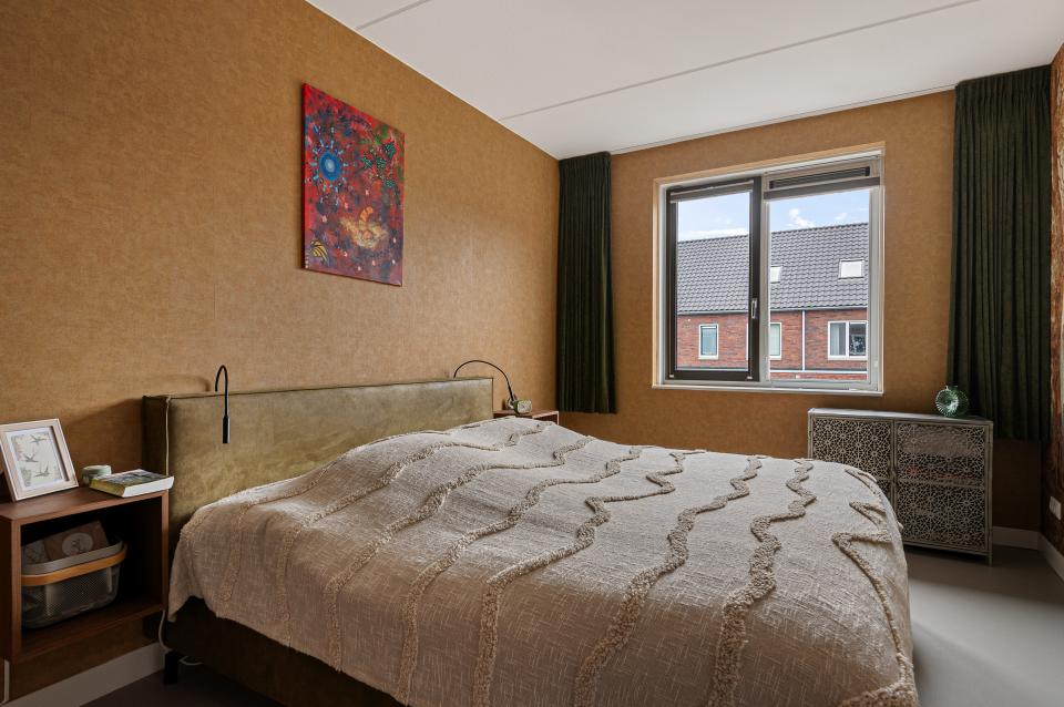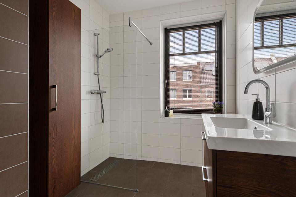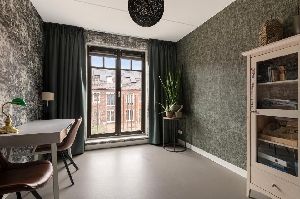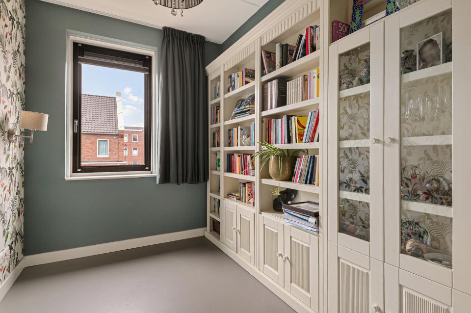 Op de eerste verdieping bevinden zich drie slaapkamers en de badkamer. De gehele verdieping is voorzien van linoleum en vloerverwarming, wat zorgt voor een aangename warmte en een verzorgde uitstraling. De ouderslaapkamer aan de achterzijde is voorzien van een prachtige op maat gemaakte inbouwkast met verlichting. Daarnaast is er een kleinere kamer, ideaal als werkkamer, babykamer of extra opbergruimte. Aan de voorzijde bevindt zich een ruime slaapkamer met hoge openslaande deuren en Frans balkon. De badkamer is volledig betegeld en luxe afgewerkt met een inloopdouche, wastafelmeubel, verlichte spiegel, designradiator en extra opbergkast. Ook hier is een raam aanwezig voor daglicht en ventilatie.