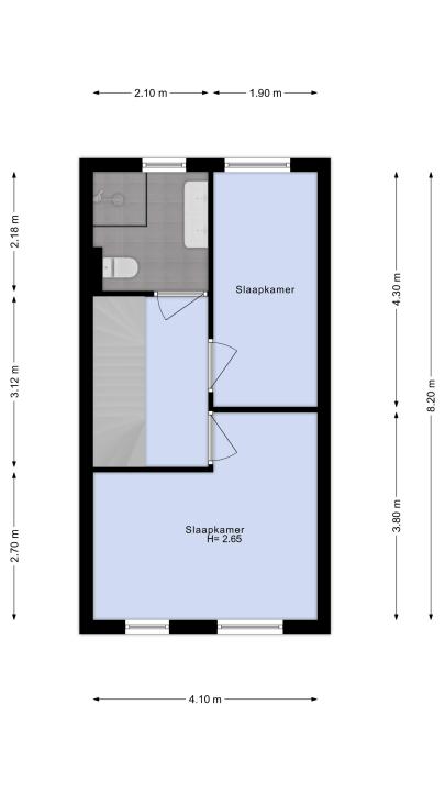 Er zijn op deze verdieping een tweetal slaapkamers. Aan de achterzijde bevindt zich een zeer royale slaapkamer. Aan de voorzijde is er de kleinere slaapkamer.