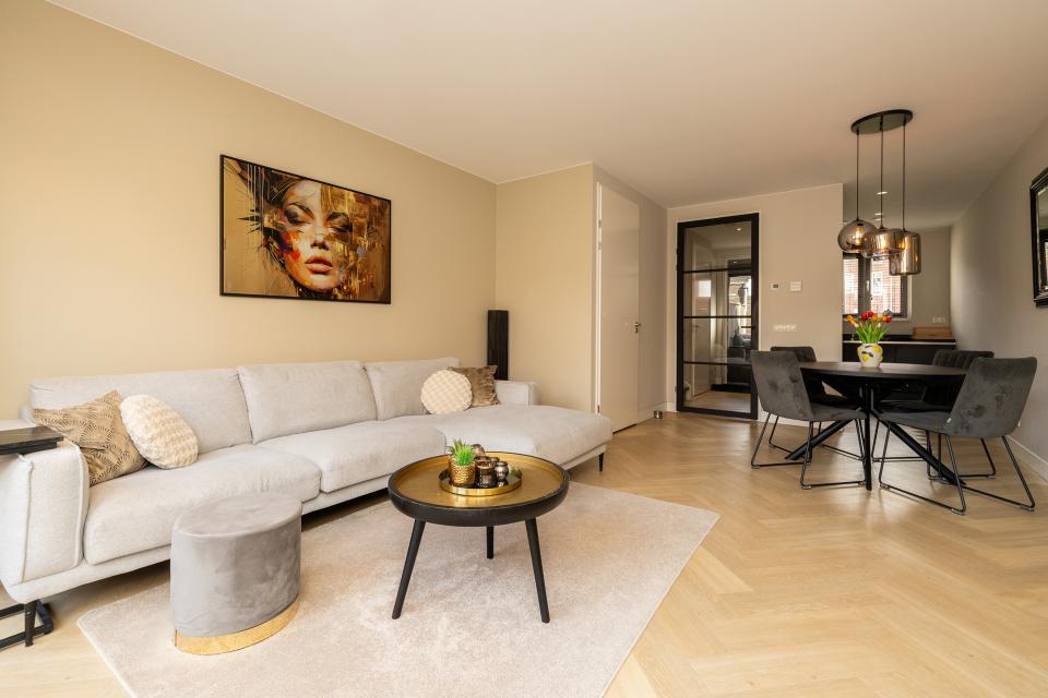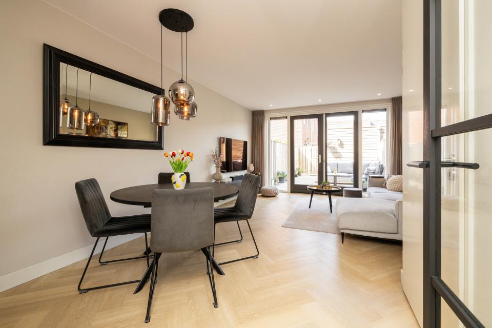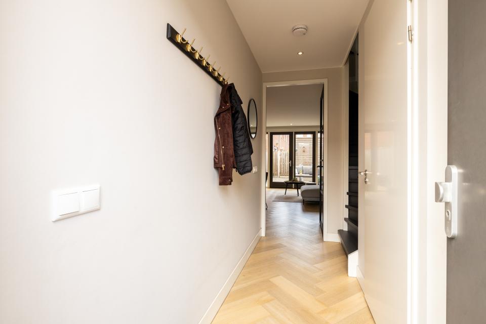 Aan plantsoen gelegen, moderne, sfeervolle gasloze tussenwoning (2021). In de populaire en groene nieuwbouwwijk ‘Landgoed in den Houte’, op een steenworp afstand van het gezellige centrum van Noordwijkerhout bevindt zich deze zeer verzorgde “pakhuiswoning”. Achter de woning is er ruime parkeergelegenheid.