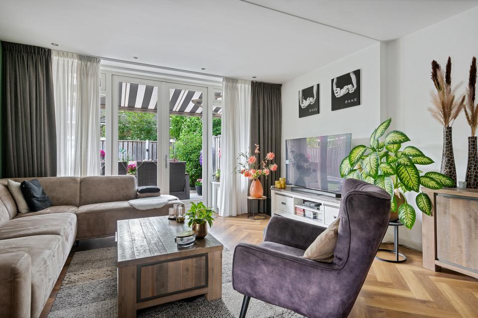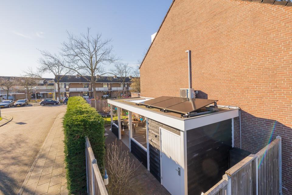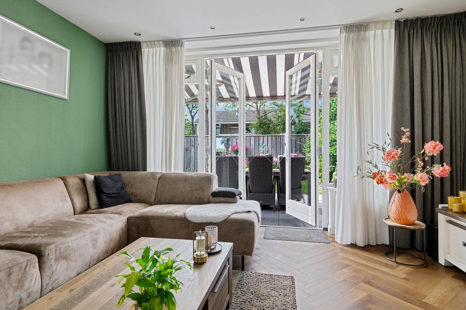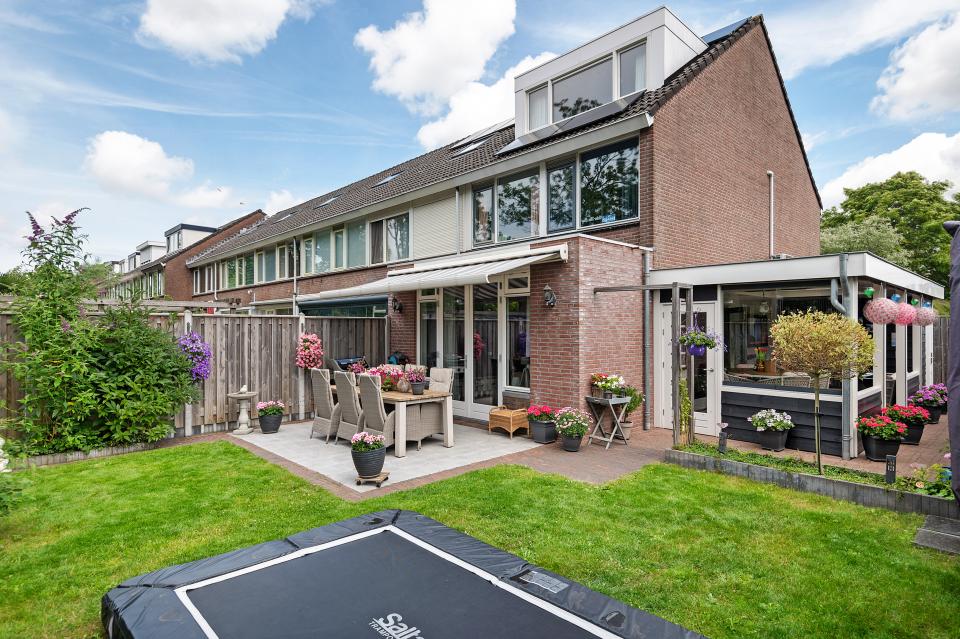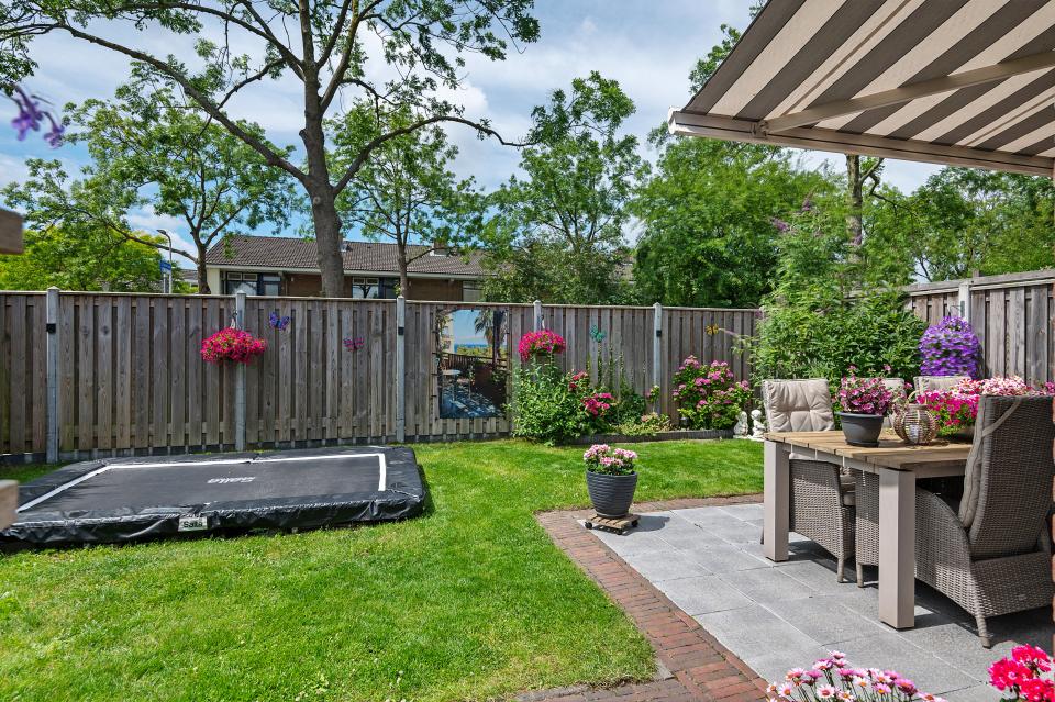 De woning beschikt over een verrassend ruime en zonnige zij- én achtertuin, die via openslaande deuren aan de zij-en achterkant te bereiken is. Deze tuin is fraai aangelegd met een combinatie van gras en betegeling en bieden daardoor volop mogelijkheden: van spelen en tuinieren tot heerlijk ontspannen in de buitenlucht. Door de hoekligging ervaart u hier een gevoel van ruimte dat bij veel woningen ontbreekt.