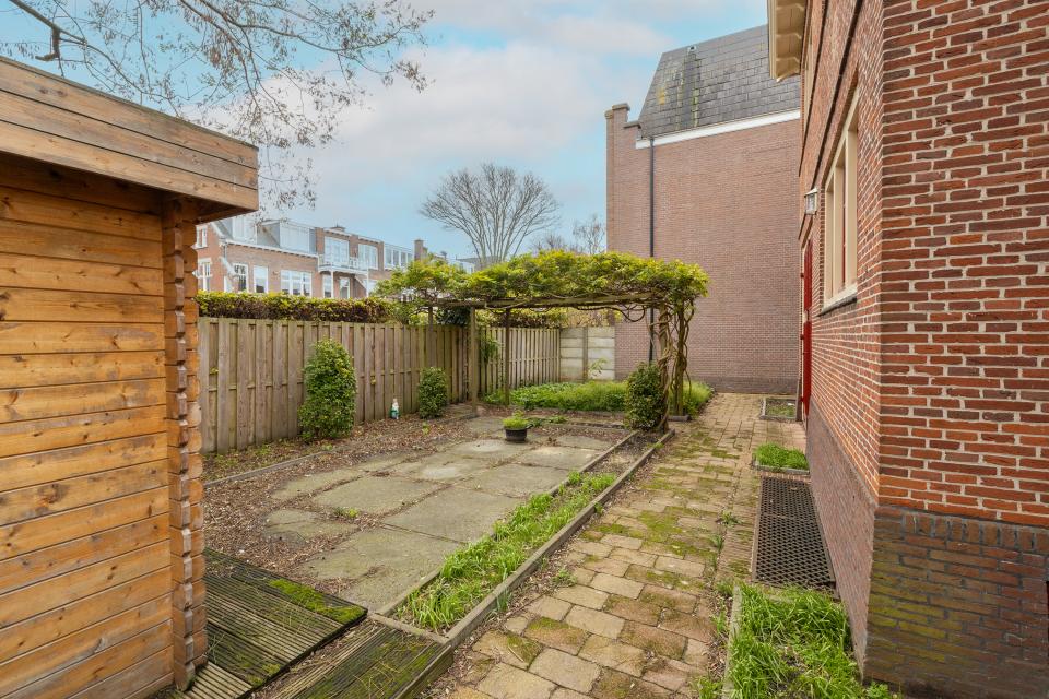 De woning beschikt over een ruime kelder van circa 30 m², bereikbaar via een vaste trap, met een plafondhoogte van bijna 2 meter. Wat de ruimte om het huis betreft geldt dat de woning over een fijne achtertuin met de nodige privacy en een vrijstaande houten berging beschikt. De tuin aan de voorzijde kent eveneens een prima afmeting wat het aanzicht van het statige pand absoluut verrijkt. Daarnaast biedt de voortuin ook de mogelijkheid om op eigen terrein te kunnen parkeren.