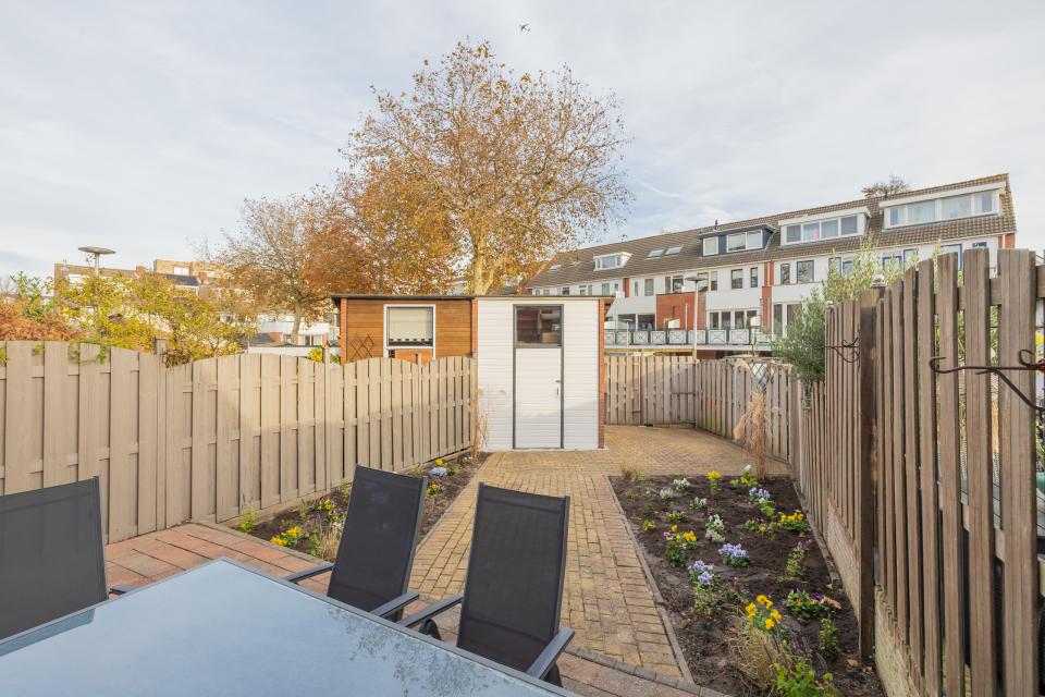 De zonnige achtertuin, gelegen op het zuidoosten, is fraai aangelegd met een ruim terras waar u heerlijk kunt genieten van de zon. De tuin beschikt over een vrijstaande berging en is tevens via een achterom bereikbaar. Het perceel beslaat in totaal circa 150 m².Ligging