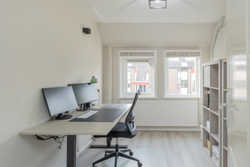 Via de vaste trap bereikt u de royale zolderverdieping met een vierde ruime slaapkamer en een naar wens in te richten werk- of hobbyruimte met dakraam. Dankzij de deels recht opgetrokken gevel aan de voorzijde is deze verdieping verrassend ruim en licht. Daarnaast vindt u hier een aparte wasruimte met aansluiting voor wasmachine en droger, de opstelplaats voor de cv-installatie en de omvormer voor de zonnepanelen.Tuin