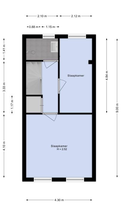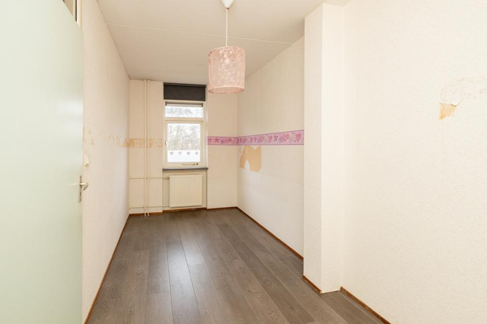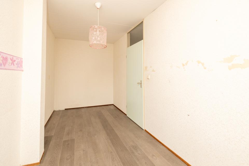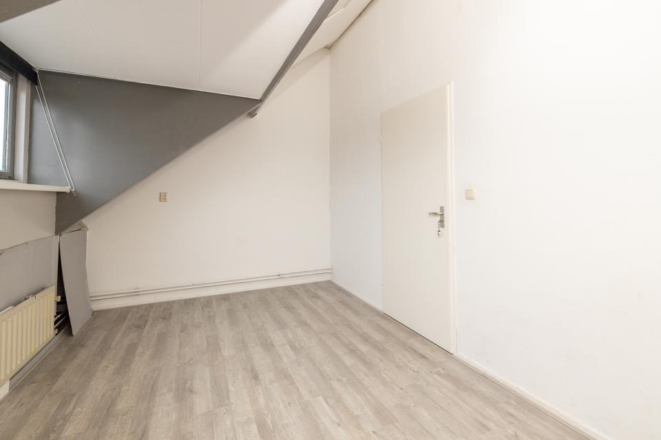 De overloop is voorzien van een trapkast en geeft toegang tot de badkamer en twee slaapkamers. De badkamer is geheel betegeld en voorzien van douche en wastafel. De ruime (ouder)slaapkamer is gelegen aan de achterzijde van de woning en de tweede slaapkamer is gesitueerd aan de voorkant.Tweede verdieping
