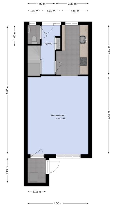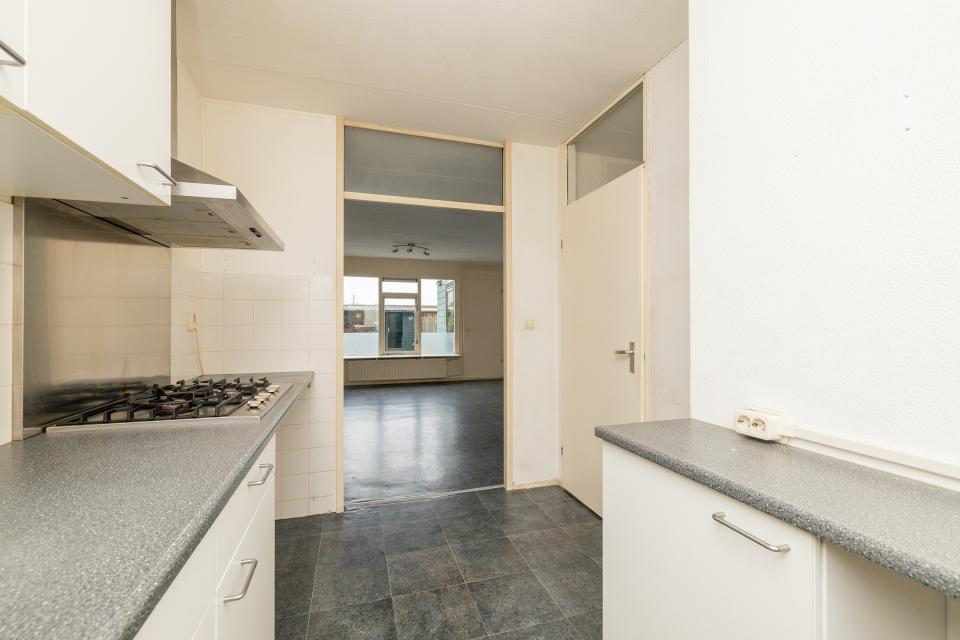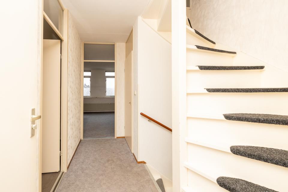 U komt binnen in de hal. De hal is voorzien van meterkast, toilet met fonteintje, trapopgang naar de eerste verdieping, trapkast en biedt tevens toegang tot de keuken. De keuken is aan de voorzijde van de woning gelegen. Via de keuken komt u in de tuingerichte woonkamer terecht. Aan de achterzijde van de woning bevindt zich een bijkeuken, welke voorzien is van aansluitingen voor de wasmachine/droger en biedt tevens toegang tot de uitzonderlijk diepe en zonnige achtertuin.Eerste verdieping