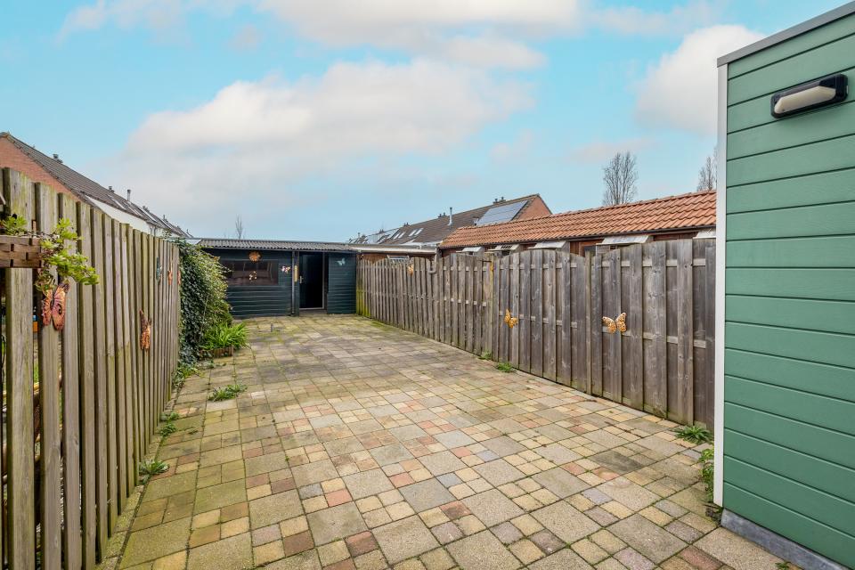 De woning beschikt over een royale voortuin en diepe achtertuin van maar liefst 14 meter (inclusief overkapping), biedt veel privacy en is gelegen op het zonnige zuidwesten. Hierdoor kunt u gedurende de gehele dag volop van de zon genieten. De tuin is thans betegeld maar biedt legio mogelijkheden. Aan de achterzijde van de tuin bevindt zich een overkapping en stenen berging met ‘achterom’.Verplichting tot zelfbewoning